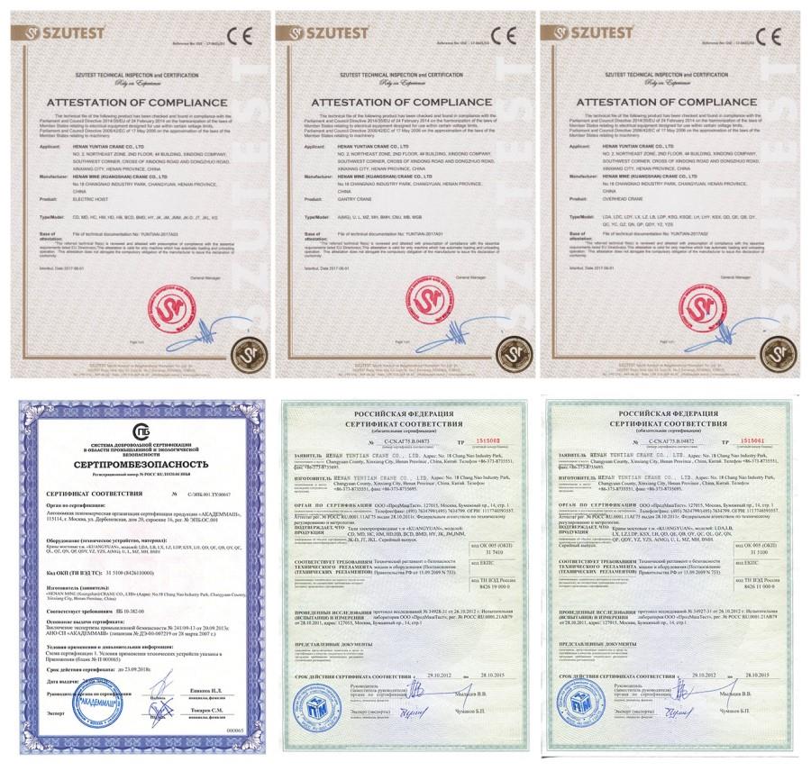 لدينا رافعة مرت CE ، ISO ، GOST ، SGS ، TUV ، BV ، وهلم جرا.