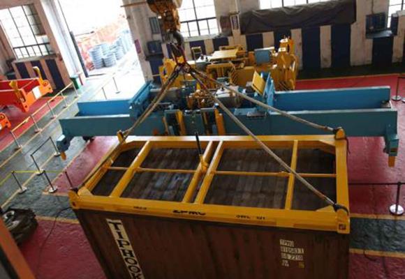 يتم تزويد آلة تفريغ الحاويات بآلية تصغير ميكانيكية أو هيدروليكية ، في نطاق يتراوح من 20 قدمًا إلى 45 قدمًا ، من أجل التكيف مع المواصفات المختلفة لمتطلبات التعامل مع الحاويات.