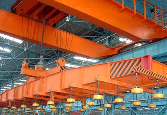 الرافعة العلوية المزدوجة العارضة مع الكهرومغناطيسية هي رافعة متخصصة لرفع ونقل منتجات الصلب ، ألواح الصلب والأنابيب الفولاذية. يتم تشكيل هذه الرافعة من خلال العارضة ، وآليات السفر ، ورفع العربة ، والأجزاء الكهربائية ، وناشرة الكهرومغناطيسية. يمكن أن تستمر قوة الشفط الكهرومغناطيسية لهذه الرافعة العلوية لمدة 10 دقائق بعد انقطاع التيار الكهربائي. ويمكن تخصيص شكل مفرشة الكهرومغناطيسية على شكل مواد يتم رفعها.